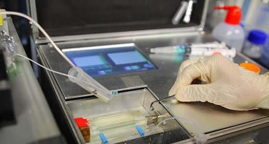 据了解,该项目的核心技术是基于以抗体和功能基因为敏感材料的生物传感器技术,研发出的仪器可对多种污染物同时进行快速检测。在施汉昌担任负责人的清华大学现代环境监测技术研究组的实验室中,我们看到有一间实验室用于生物敏感材料的研究与制备,另一间实验室正在进行仪器和检测方法的研究与开发。