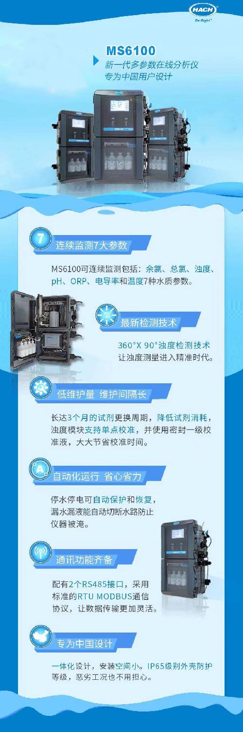 饮用水水质在线监测系统以美国哈希公司研发生产的MS6100多参数在线分析仪为核心,集成压力传感器和数采仪。每隔五秒钟,会向浙江省饮用水卫生水质在线监测管理平台(此平台由安恒集团自主开发)发送数据,一旦数据出现异常,平台会自动收到报警提醒,方便监督员能够及时和水务集团联系,在最短时间内排除饮水污染的隐患。
